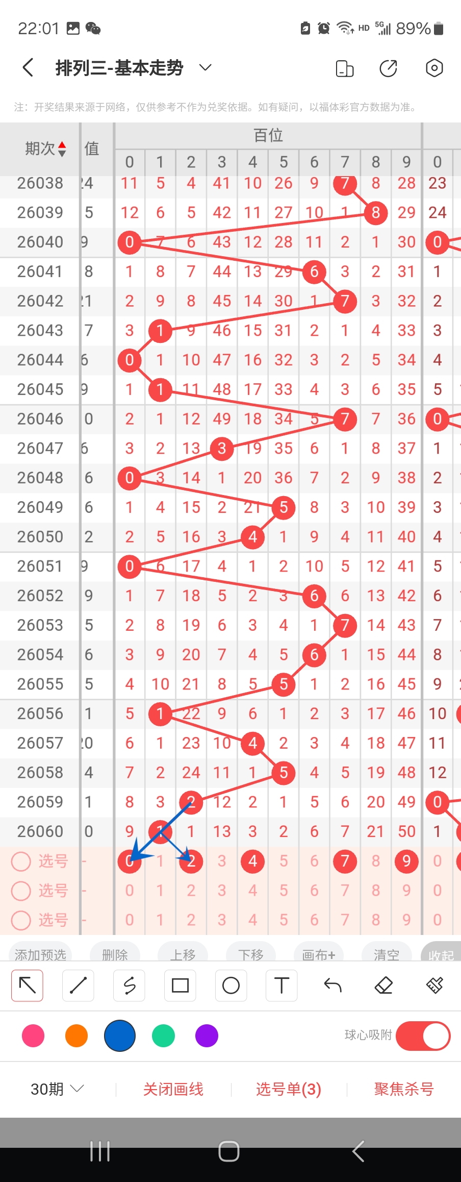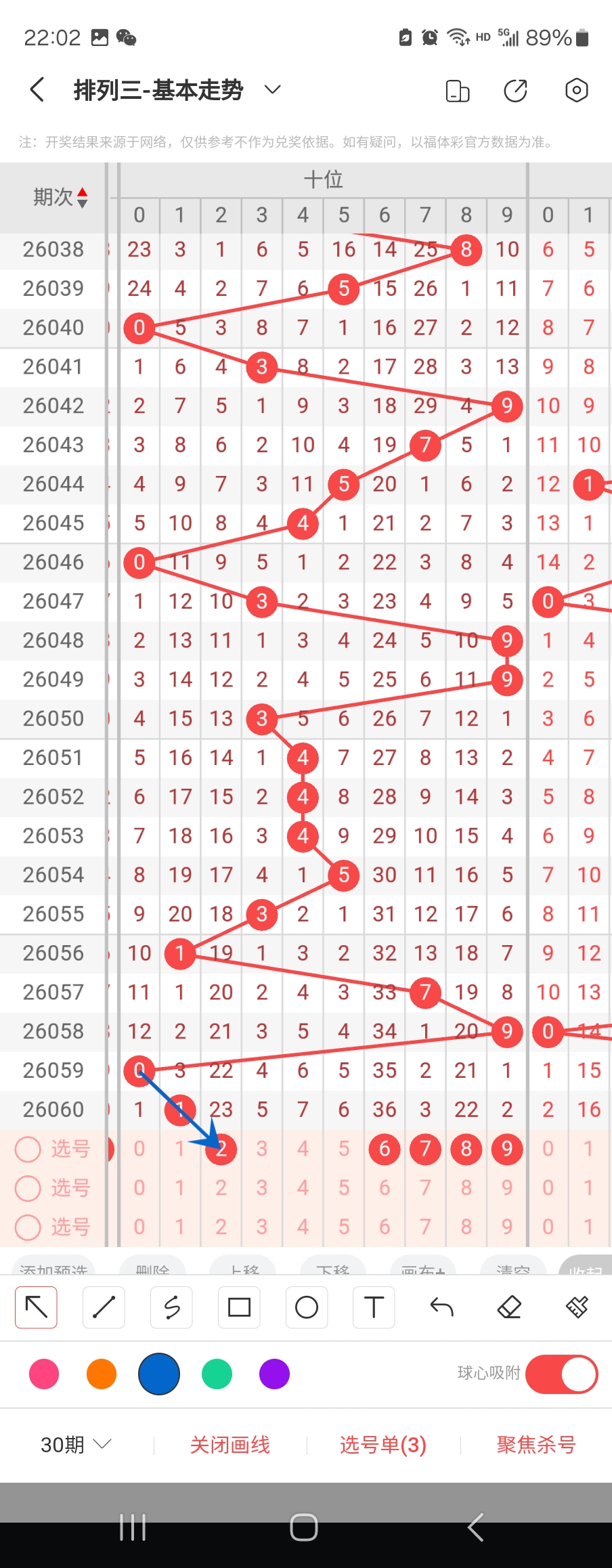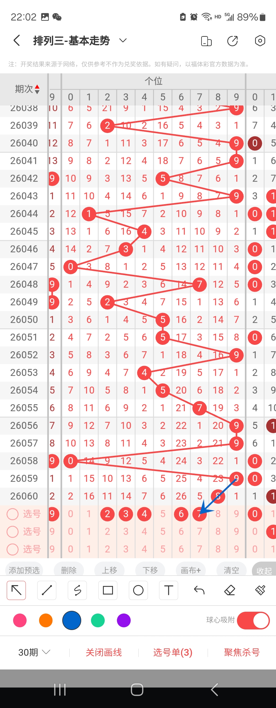 个位走势标注如下图;