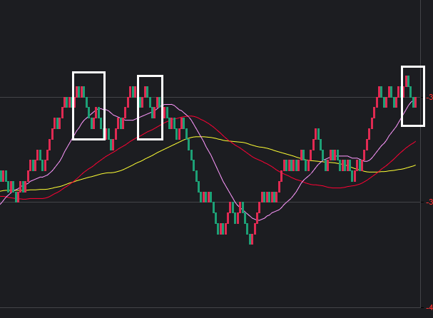 可以看到一些规律,在白框中,如果一致,那么接下来这些跨度也会出。