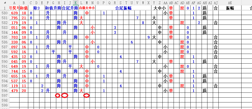 如上图3,和值升平降分析,和值降的概率大,小于20和值。