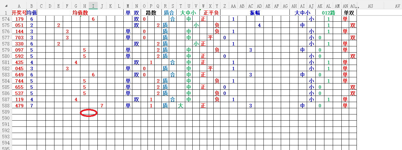 如上图1,大中小分析,均值小中大数比较好,也就是 3456 均值最好,重点:45。