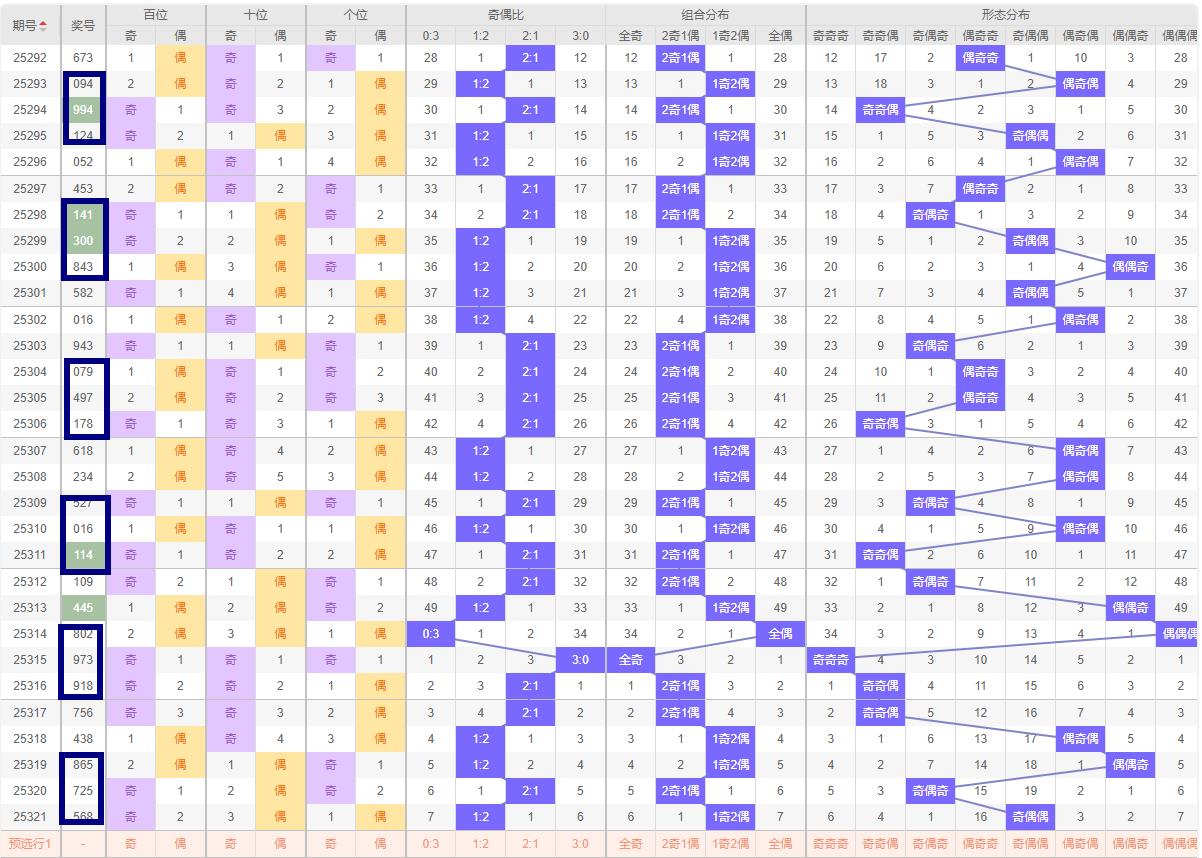 322期/排列3综合分析 :大小走势.奇偶比列及跨度分析等组号分析