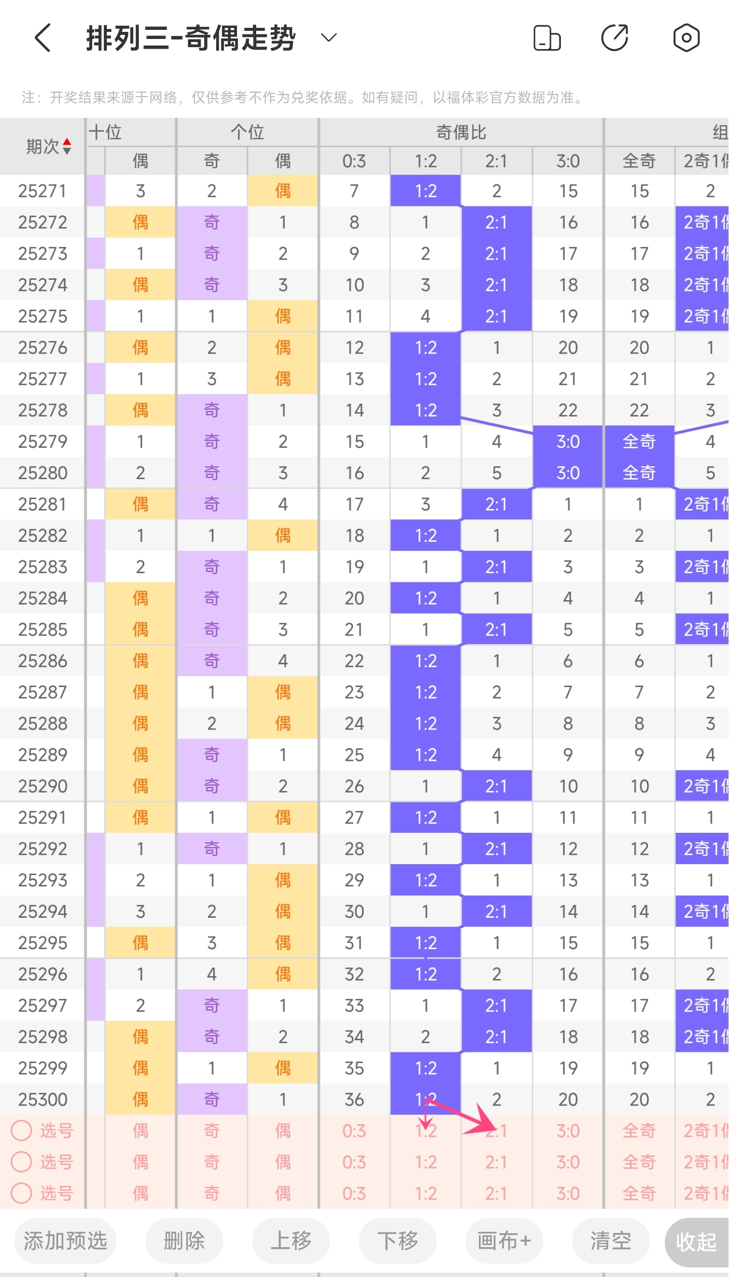 三、通过奇偶走势分析: