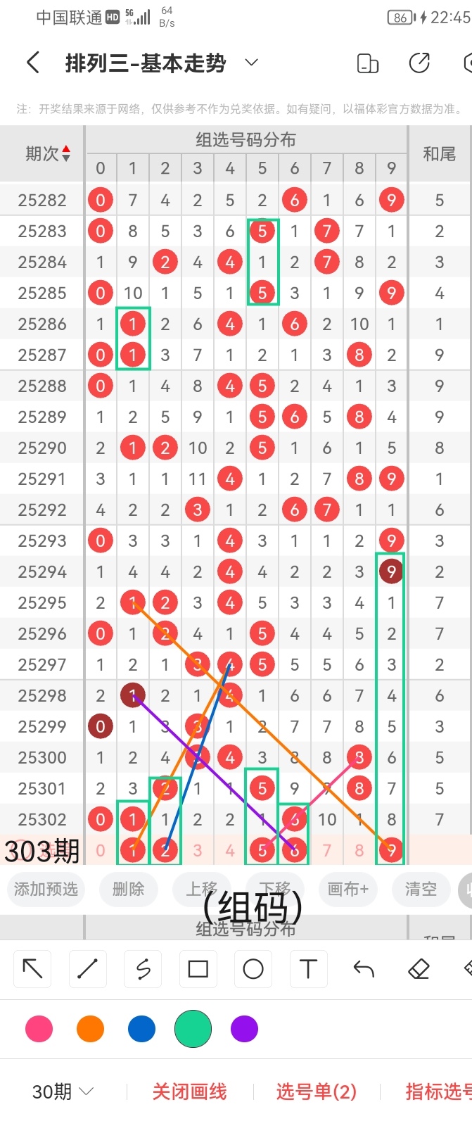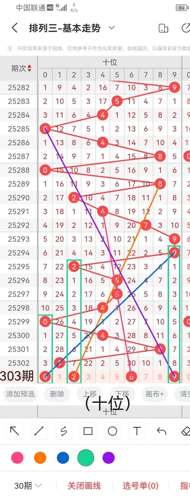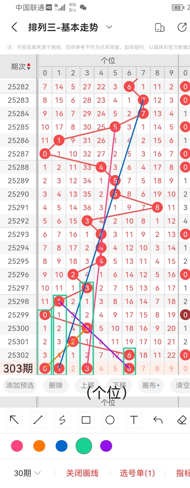 通过以上对上期的简单回顾,下面进入体彩排列三第2025303期(下面简称本期)的选号分析: