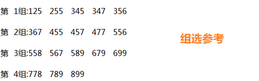 跨度=01234;合值=2468,胆码579=12,