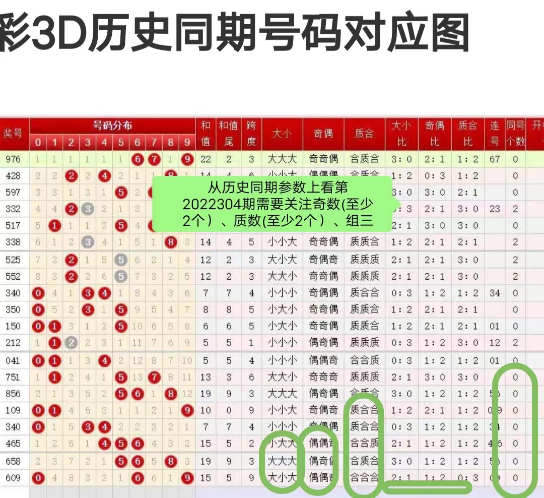 附:排列3第2022304期出球参数