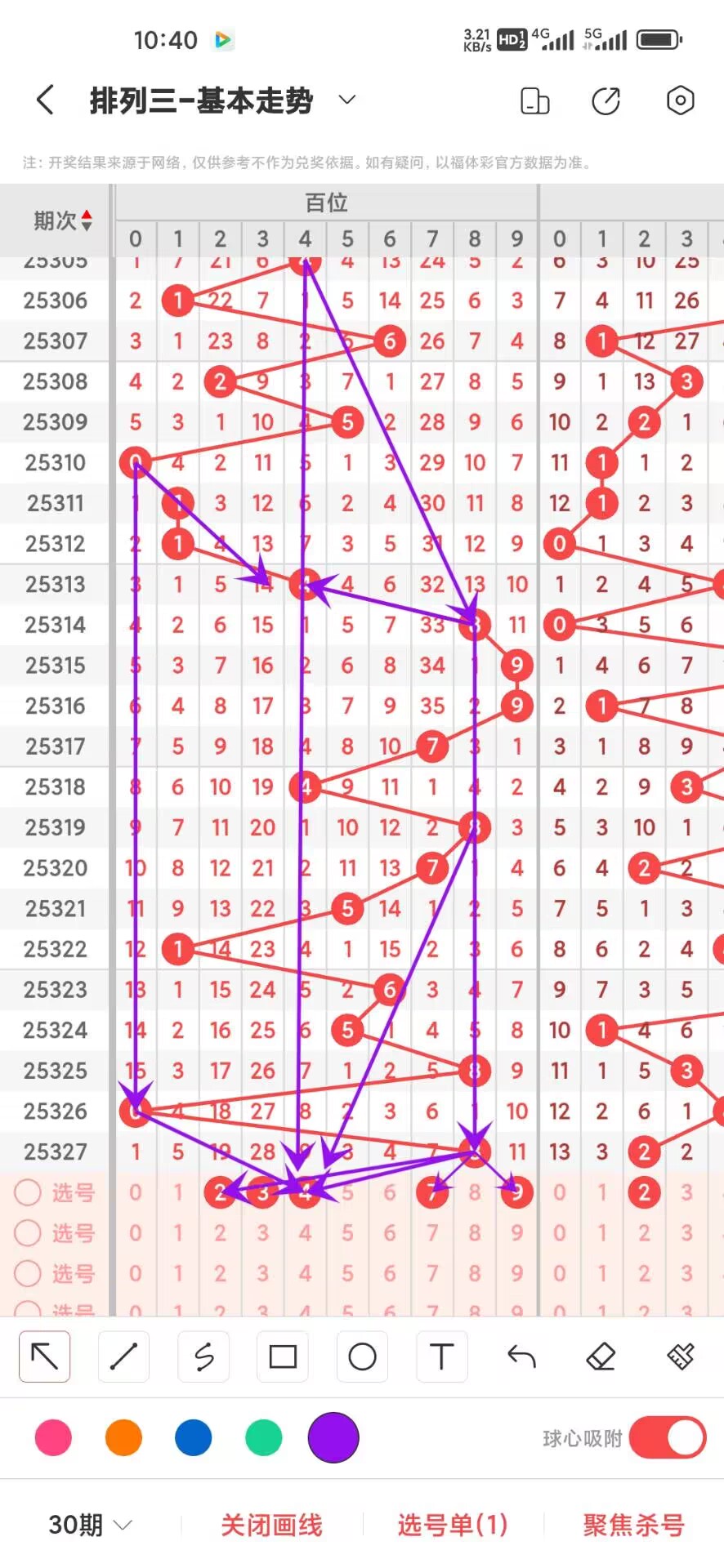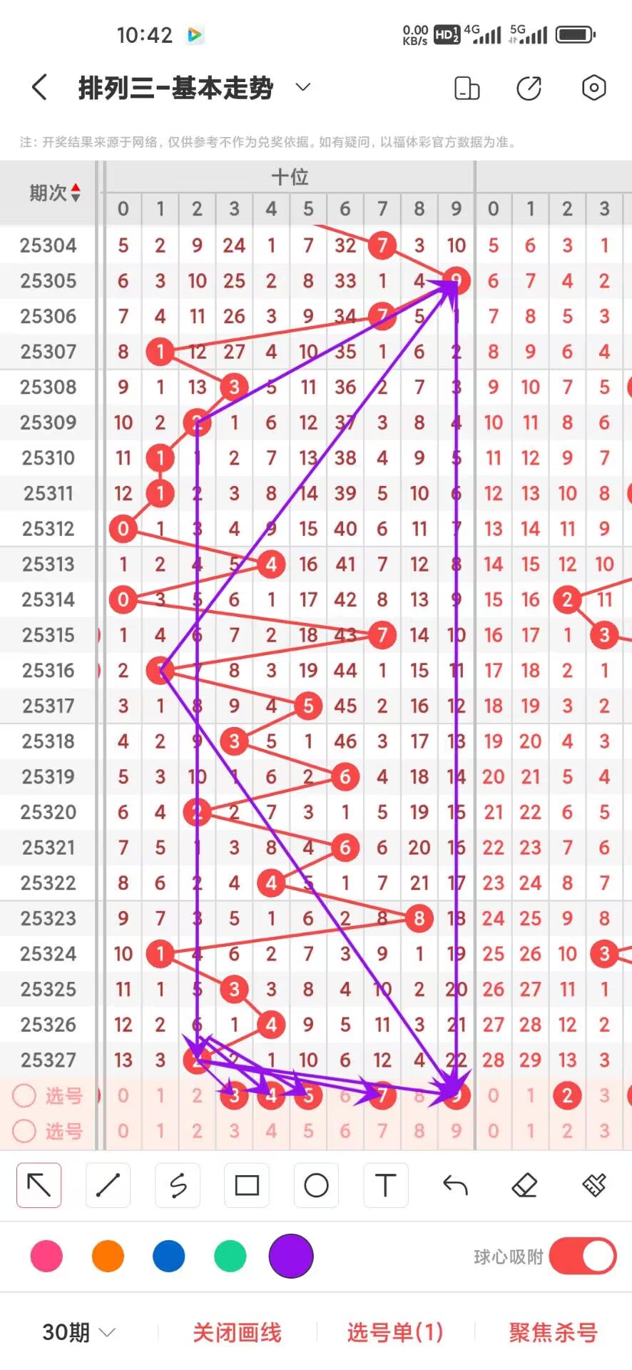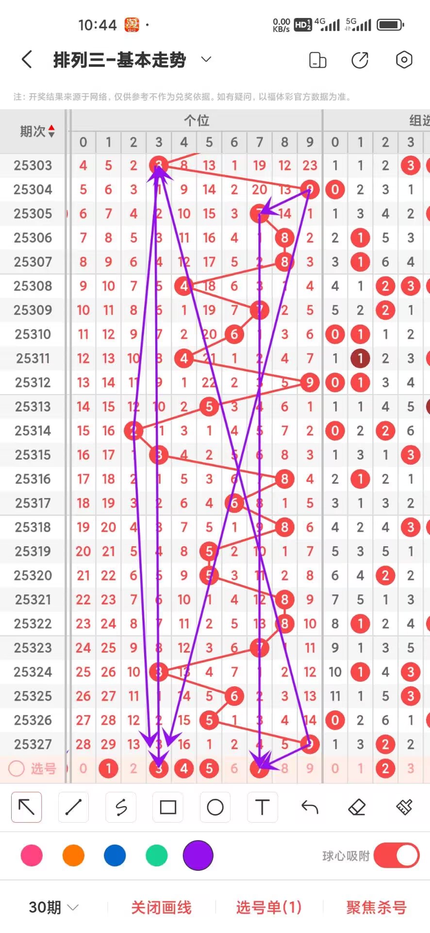 2025328期,上期个位开出奇数9,我们通过走势图来看100期012路中下号的数据,0路号码的最大总数是30次,0369分别在100期内下号分别是6,13,7,4,目前3小号最多,我们再来看1路号码最大总数是33,147号码分别是,7,11,15,1下号次数最少7次,再回过头来看2路号最大总数是37次,258号码分别是11,9,17次,这三个数之间8下号最多,在来看百位平均遗漏,目前0路遗漏的总数是64次,1路遗漏的总数是28,2路遗漏总数26,个位目前大号热度高,我们可以关注下,通过上面的走势分析我们可以看出目前个位大号568号码走势比较好,0124号码走势就有点冷淡,今天个位我们重点关注34579,具体看下面走势图