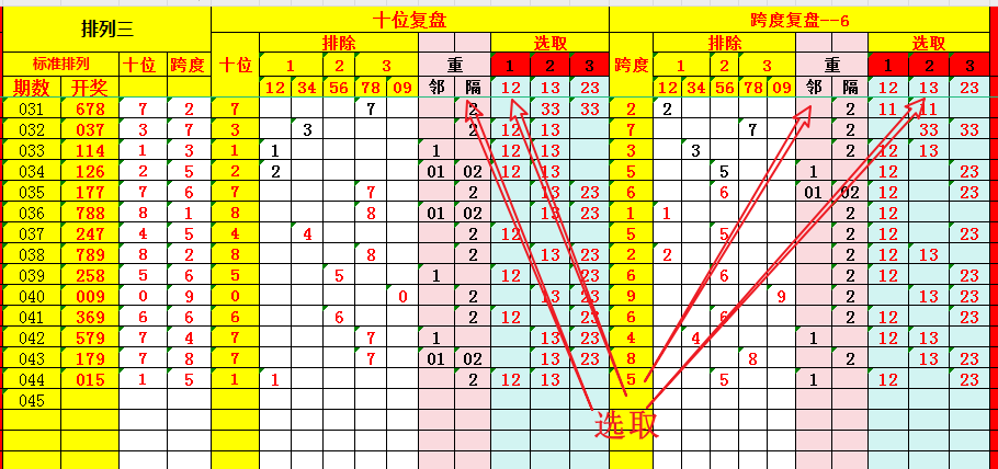 这套“标准排列”组选分析法,精髓在于:“百-十-个”位分别绑定最小位差、跨度、合值等六项指标、双维度定位复盘、分组取舍,极具参考价值。