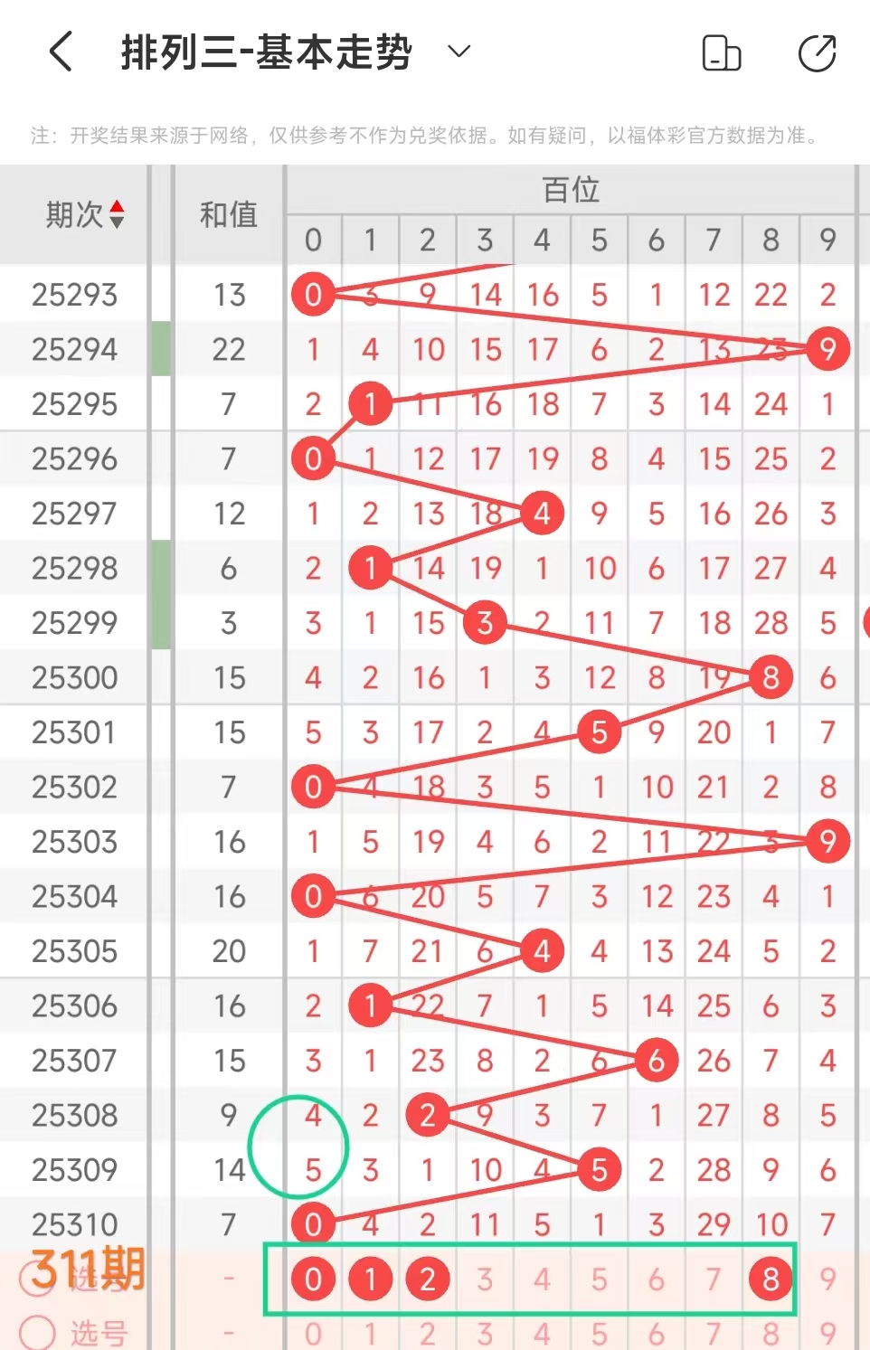 金莱排列3第311期:本期和值主看双