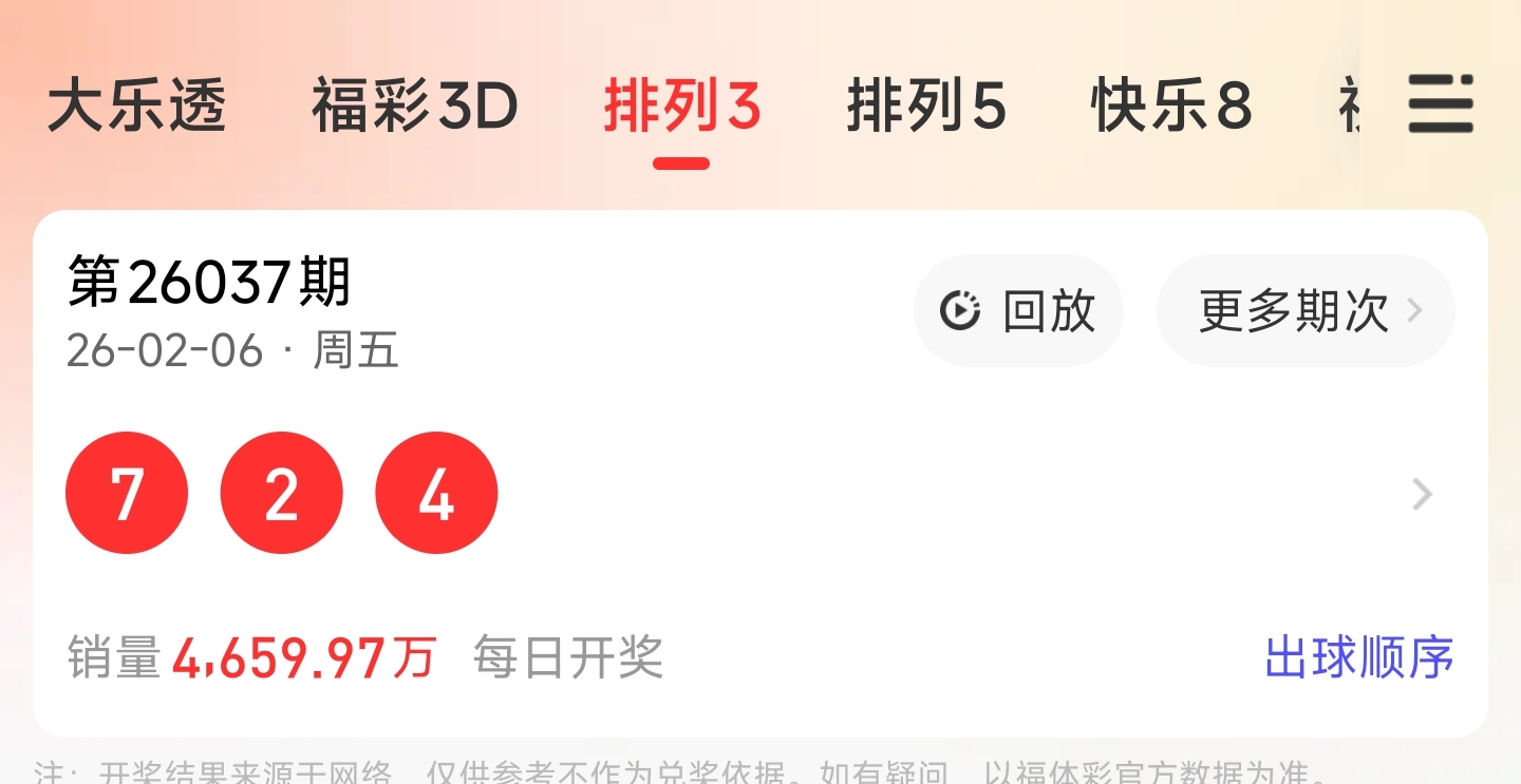上期排列3开出724,和尾为3,跨度为5,奇偶比为1:2,大小比为1:2012路个数对比为0:2:1