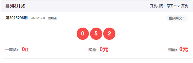 2025296期开奖号码: