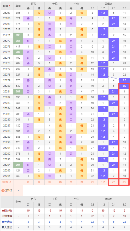 2025297期排列三条件分析:(和值、大小比、奇偶比、质合比):