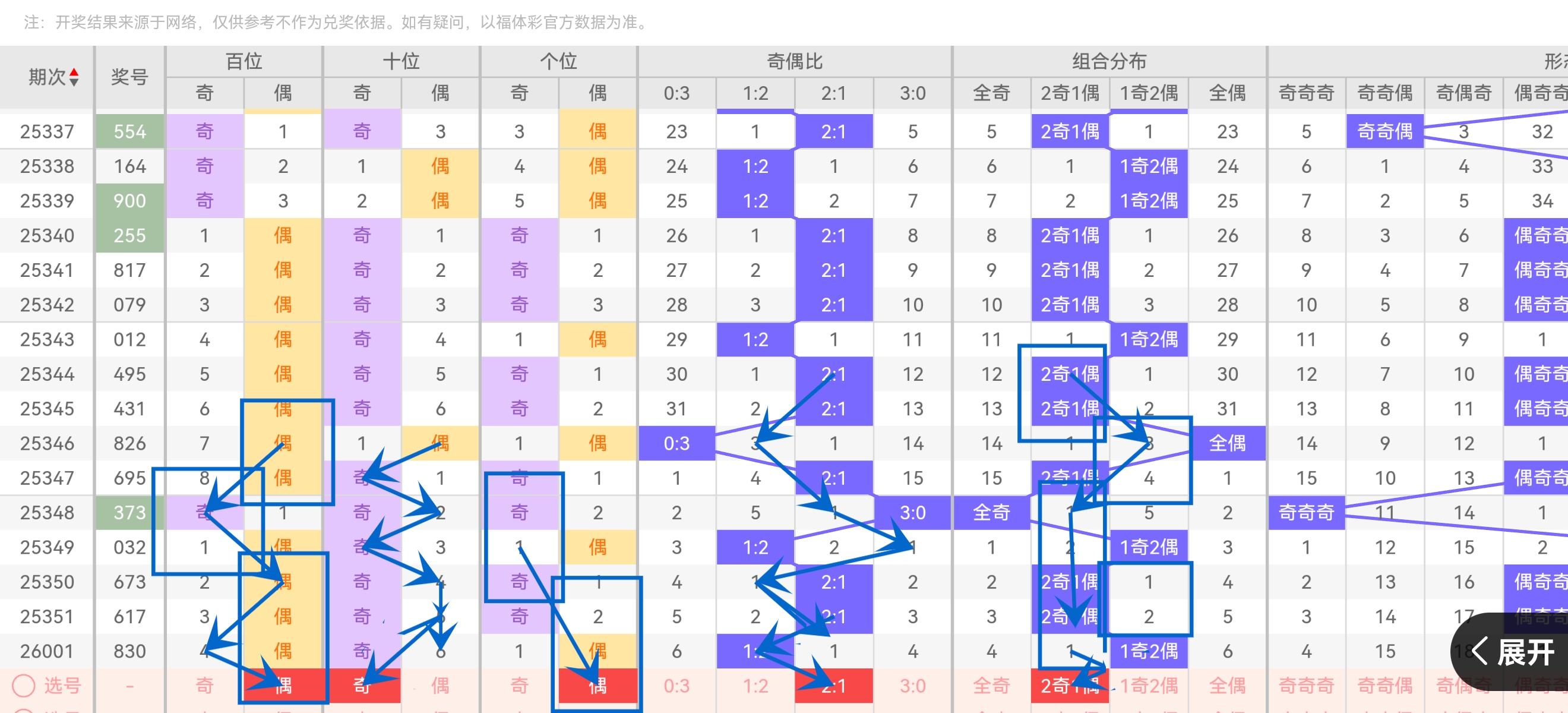 近期奇偶比:1:2、2:1、3:0推荐奇偶比:2:1(近期较稳定)大小比分析(大数:5-9,小数:0-4)