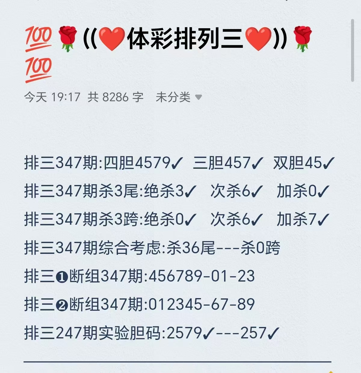 最后,再次提醒大家,以上分析和推荐仅为个人根据历史数据得出的参考意见,不代表开奖结果的必然走向。希望大家能理性看待,快乐投注。让我们一起在数字的世界里继续探索,祝大家在第347期福彩3D的开奖中收获惊喜,好运常伴!