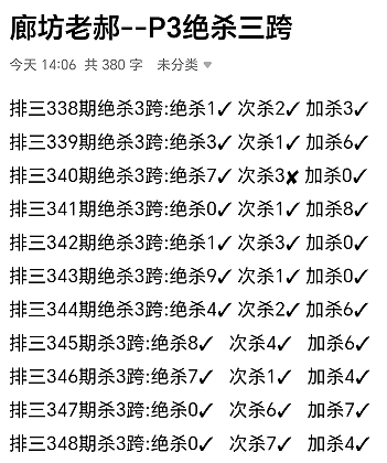 相信不少彩友和我一样,每天都会盯着排列三的走势图反复研究,试图从一串串数字中找到属于自己的幸运密码。每一期开奖号码的诞生,都牵动着无数人的心,我们在数字的海洋里摸索、探讨,为的不仅是那份期待的惊喜,更是享受分析过程中思维碰撞的乐趣。今天,老郝就带着大家一起,结合历史数据和走势规律,全面剖析排列三第347期的号码走势,希望能为大家的选号之路提供一些有价值的参考。