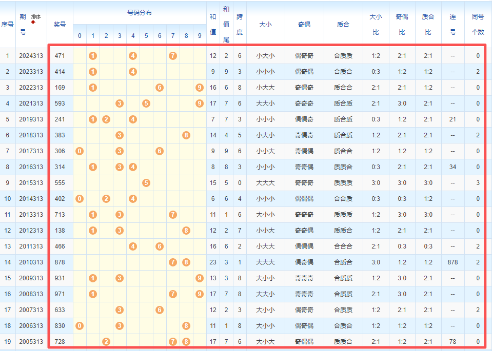 1、统计往年同期开奖号码