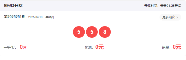 2025251期开奖号码: