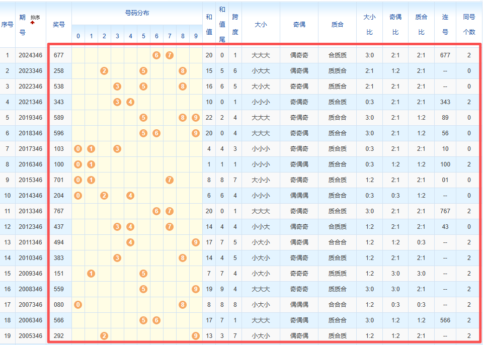 1、统计往年同期开奖号码