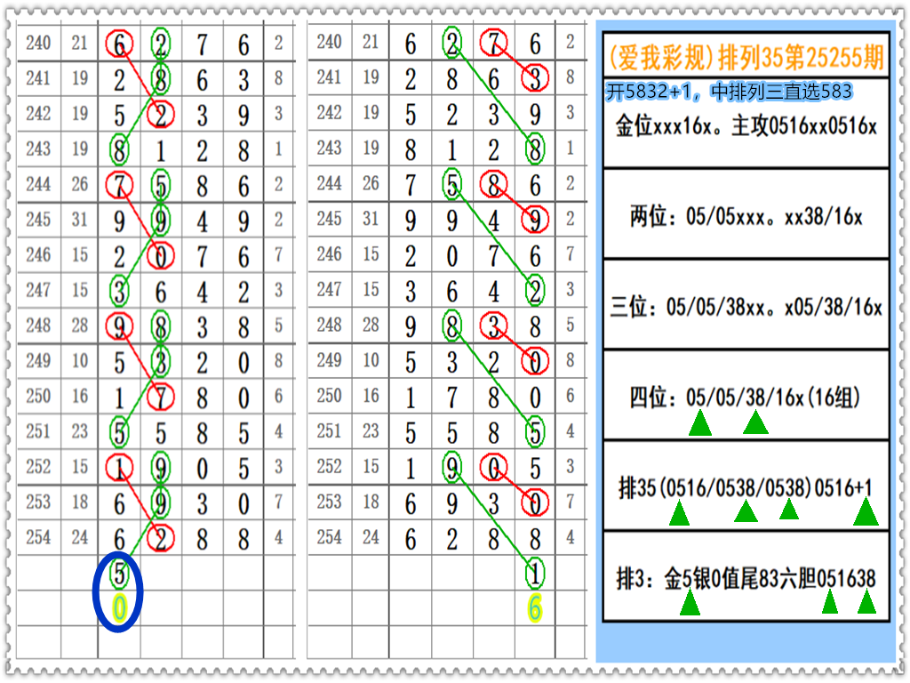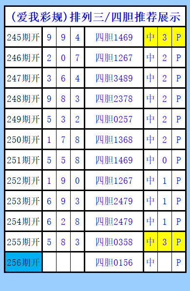 排列三第256期图文(爱我彩规),四胆推荐展示,视频上期中排列三直选583
