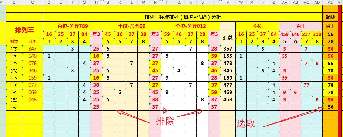 再观“两码合值”,此乃关键。其要旨在于百位加十位、十位加个位,取其和值之尾数。此步至关重要,可如沙里淘金,剔除诸多不靠谱的“垃圾组合”。 复盘数据,构建表格如下: