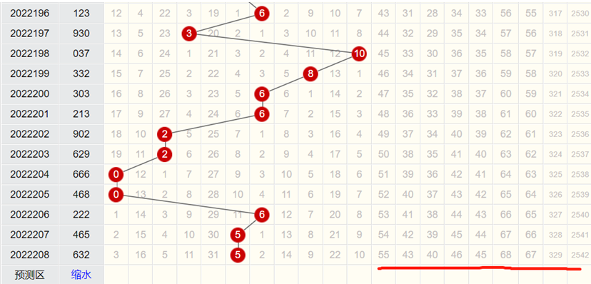 上图中明显看到质数和为大于10的号码基本彻底消失,40期没有看见任何一个数据出现,这样的情况是非常少见的,因为推断本期关注质数热出,质数的和值还要大于10,那么上面那张彩票257是完全符合这个道理的。