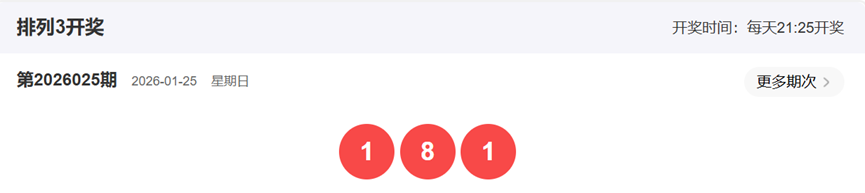 体彩排列3上一期,开奖号码为181,形态为组三,奇偶比为2:1,012路数值表现为121,和值10,和尾0,跨度7。