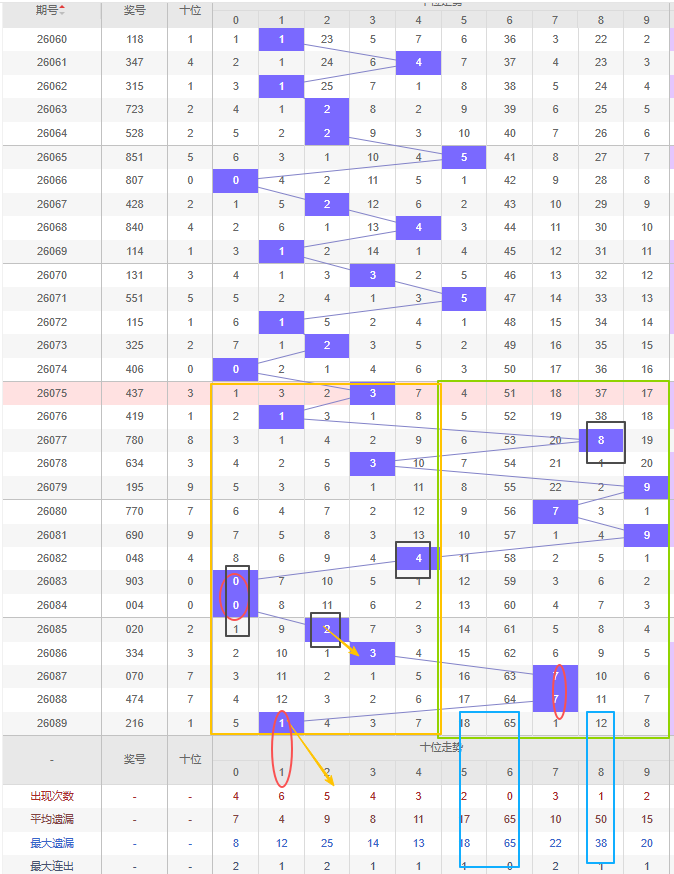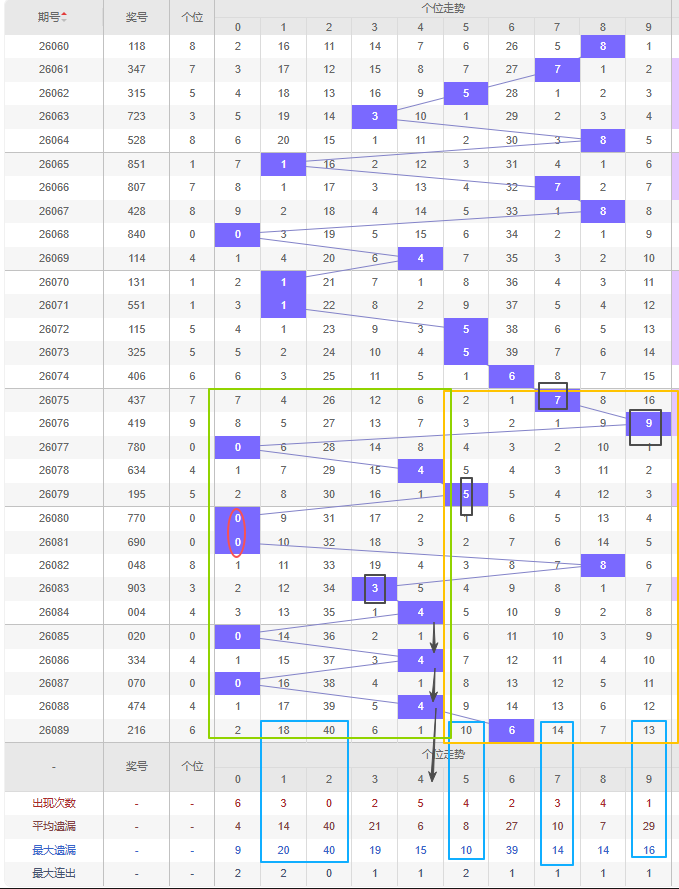 体彩排列3第2026090期的个位首先分析奇偶数号,如图所示近15期开出了4期奇数11期偶数,开出奇数概率比开出偶数概率要小一倍,那么近五期全部都开出了偶数号,本期可以继续考虑偶数号,比如遗漏期数较大的号02号和06号,遗漏了十期以上而且2号达到了最大遗漏期数,建议考虑防冷号开出。近十五期只开出了一次重号,也可以考虑偶数6号继续防重号开出,不过个人不看好继续开6号。杀号建议定在奇数号,但遗漏期数十期以上的1号和7号,可以防冷号开出。