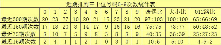 个位分析:最近300期奖号由冷到热表现为:923,024,526,627,828,129,2735,436,337次,该位号码奇偶比为150:150,大小比为139:161012路比为111:100:89