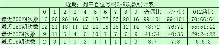 百位分析:最近300期奖号由冷到热表现为:021,427,35928,6830,234,736,138次,奖号奇偶比为158:142,大小比为152148012路比为107:101:92