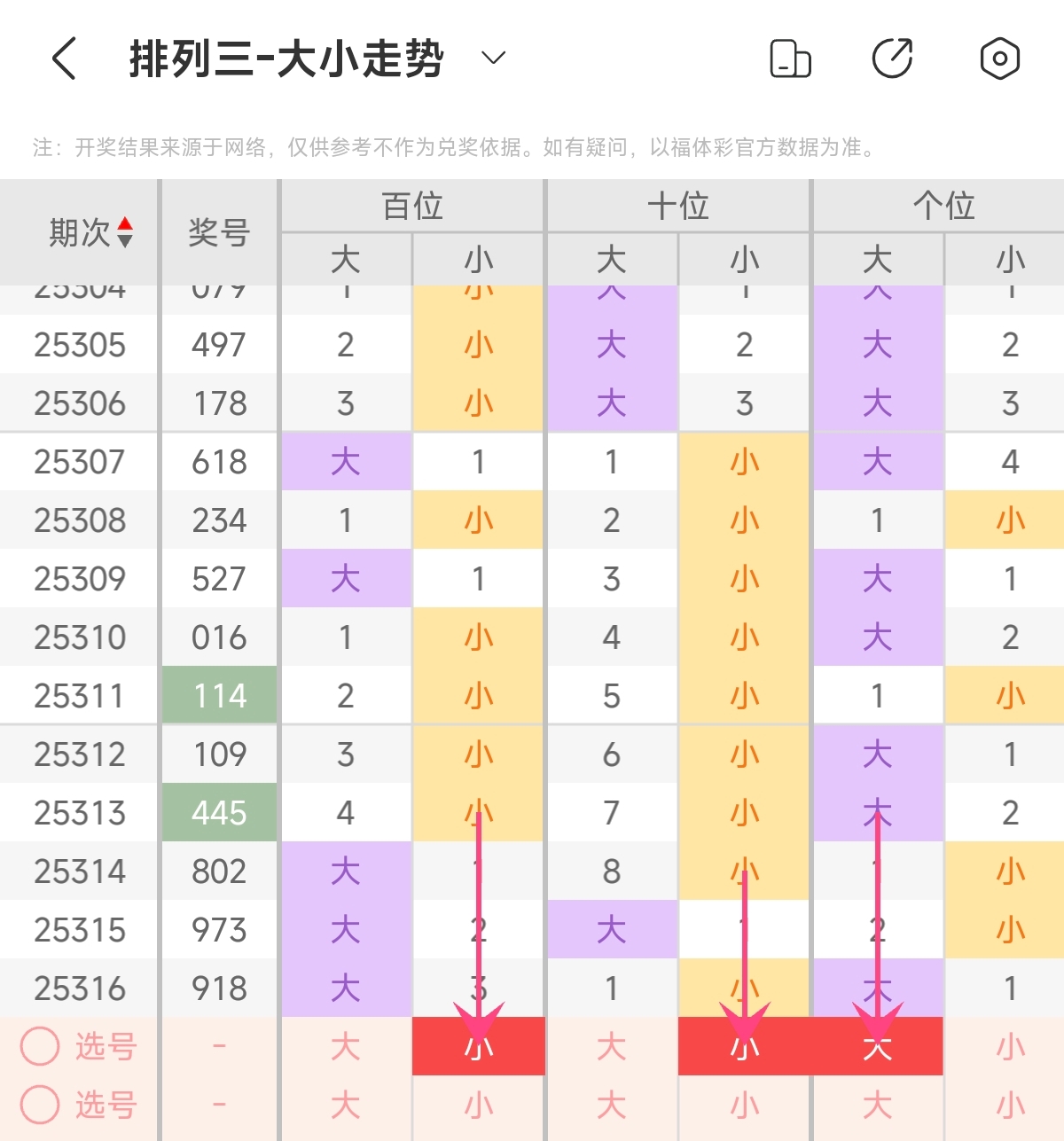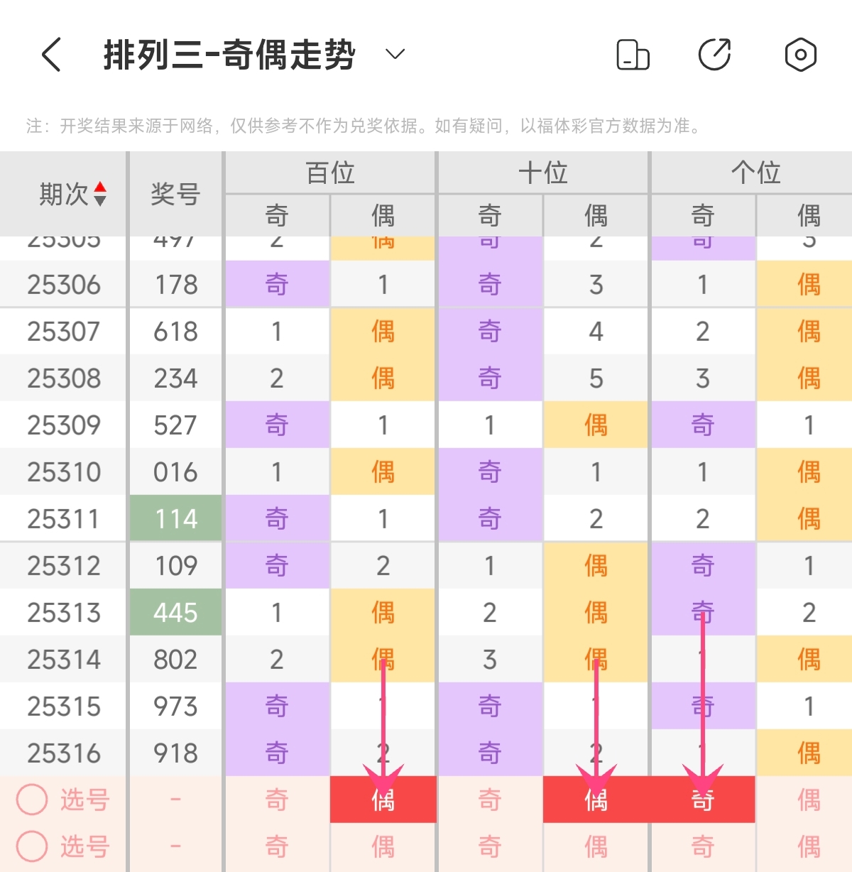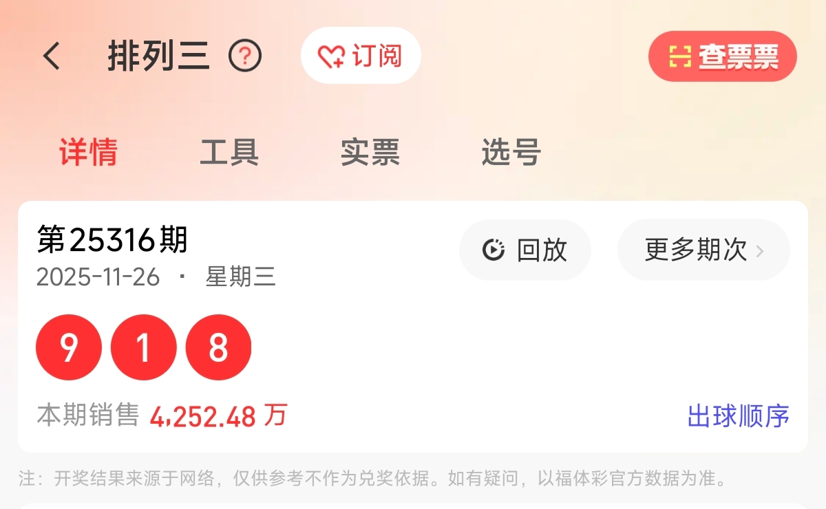 首先让我们回顾一下上期排列三第2025316期开奖号码为918,为组六形态,大小比为2:1,奇偶比为2:1,跨度为8,和值为18。