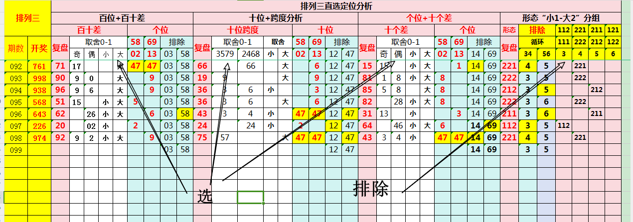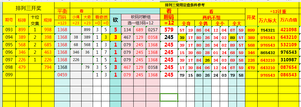 首先为“百、十、个”这三个位置的号码定义复盘规则。目的是构建一个大概率交集大底,圈定可能包含开奖号码的范围。