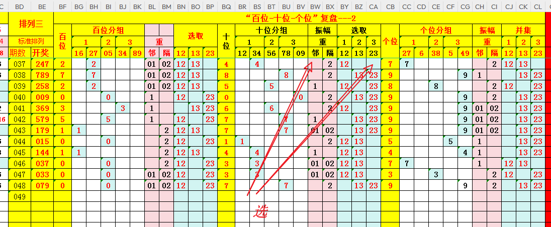 这套“标准排列”组选分析法,精髓在于:应用“最数”组号概率,“百-十-个”切片分组选取,两码偶合筛选,跨度与合值分组取舍等分析法,锁定开奖号码,极具参考价值。