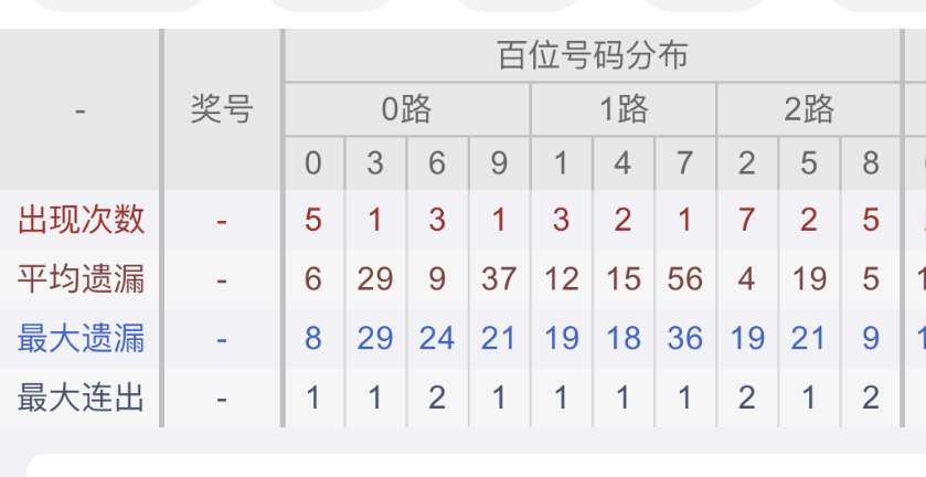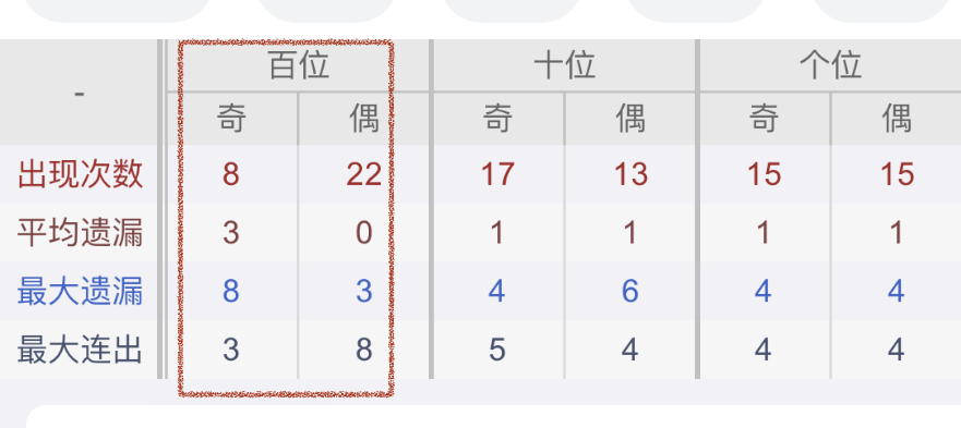 从近30期数据我们可以看出百位1是热码,这个冷热码数据我们结合之后的分析再利用它