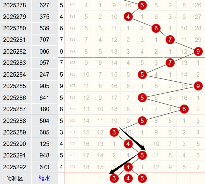 上期跨度为4,近5期跨度开出情况:第25278期开出5,属于奇数,2路号码,土属性;第25289期开出3,属于奇数,0路号码,金属性;第25290期开出4,属于偶数,1路号码,金属性;第25292期开出5,属于奇数,2路号码,土属性;第25292期开出4,属于偶数,1路号码,金属性;