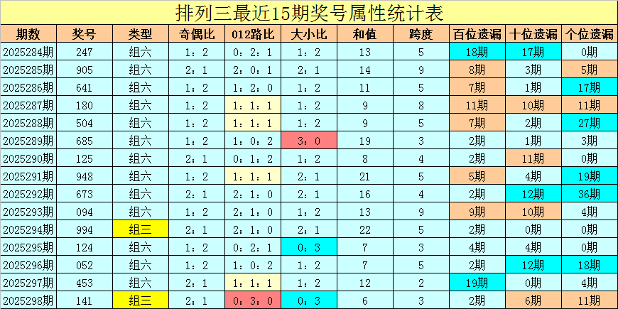 奇偶分析:最近15期奖号奇偶比为21:24,偶数号码表现活跃,两偶一奇组合出现9次,两奇一偶组合出现6次,全偶、全奇组合没有出现;最近7期奖号奇偶比为11:10,奇偶号码开出频次基本相当,本期看好奇数号码较热,关注两奇一偶组合。