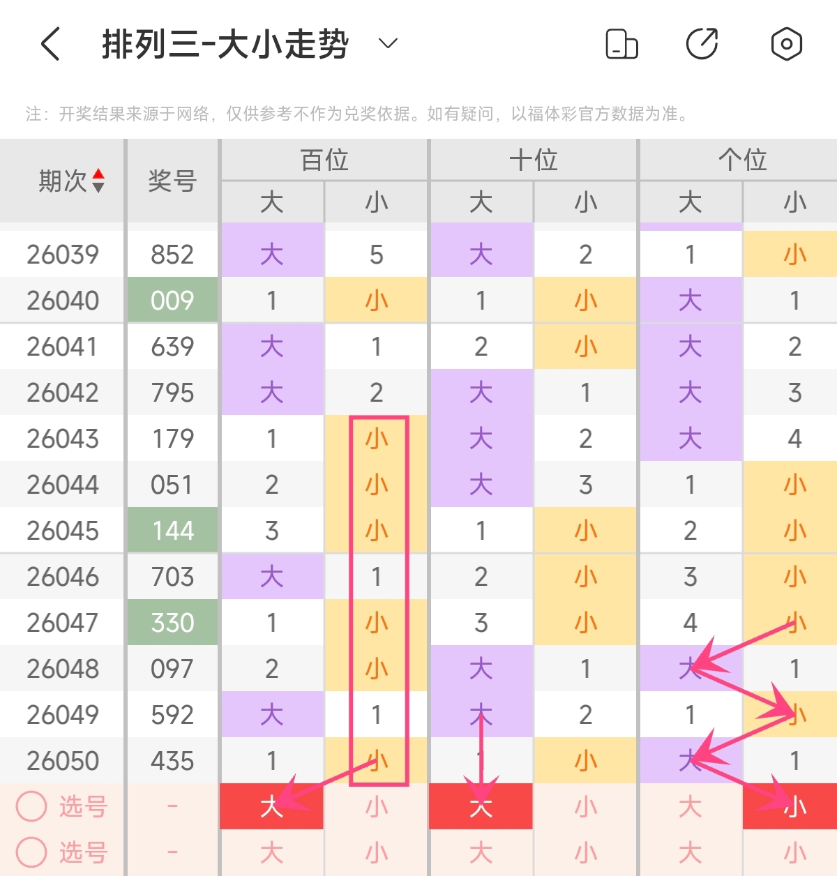 首先让我们回顾一下上期排列三第2026050期开奖号码为435,为组六形态,大小比为1:2,奇偶比为2:1,跨度为2,和值为12。
