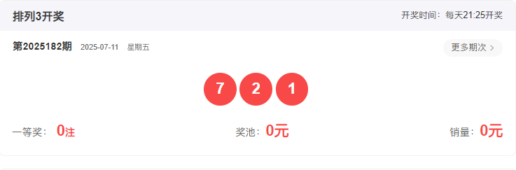开奖号码:721