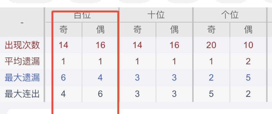 从近30期数据我们可以看出百位26是热码,这个冷热码数据我们结合之后的分析再利用它