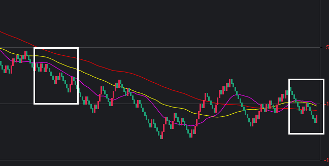可以看到一些规律,在白框中,如果一致,那么接下来这些跨度也会出。