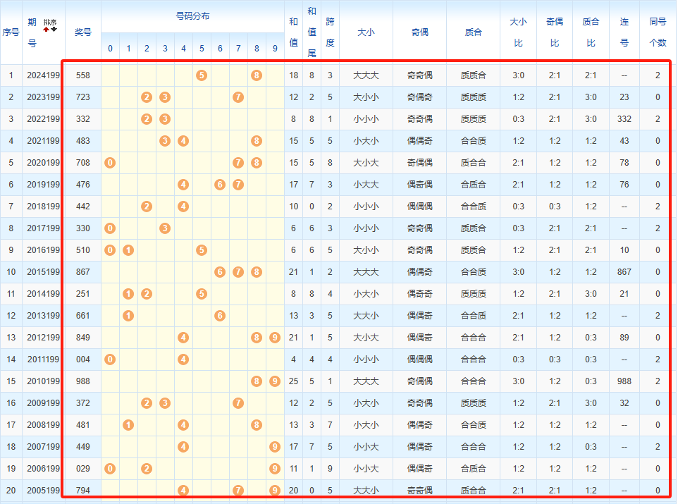 1、统计往年同期开奖号码