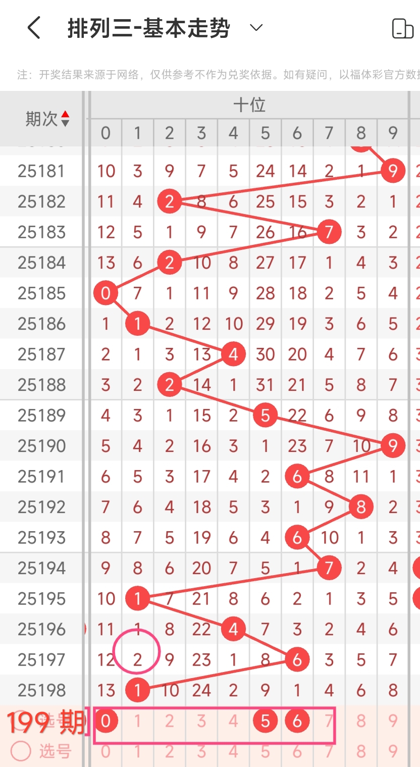 金莱排列3第199期:本期和值看单数