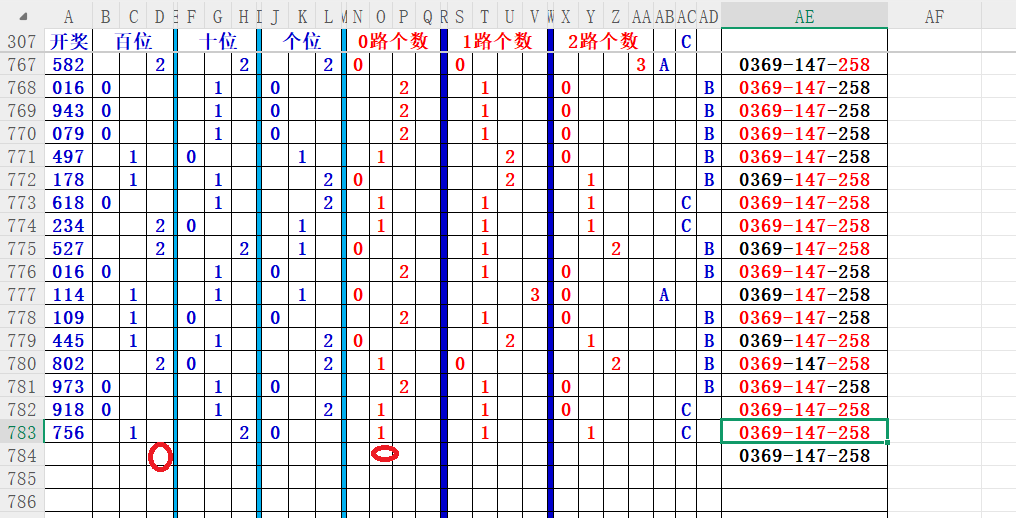 如上图56,012路分析0路出号的概率还是很大,本期可以从0路号入手做胆0369中选;看好369胆码。