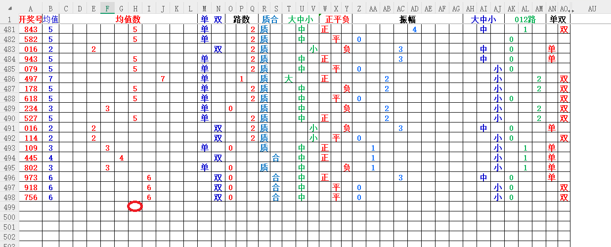 如上图1,大中小分析,均值小中大数比较好,也就是 3456 均值最好,重点:45。