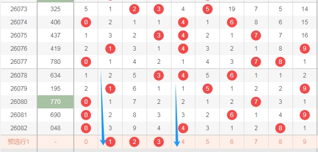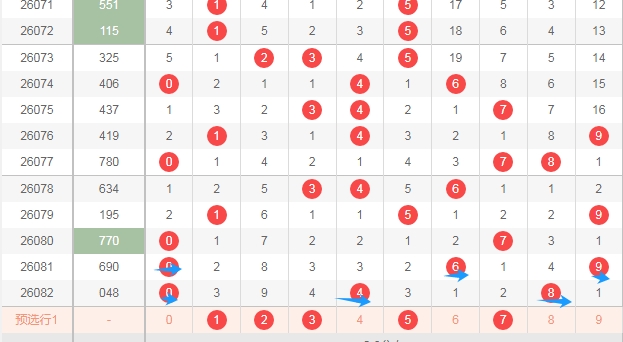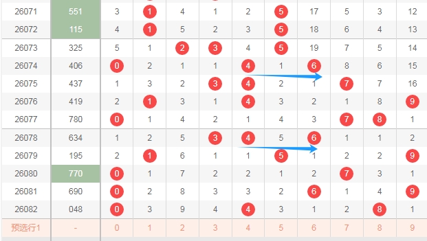 上图是体彩排列三开奖号码走势分布图,我标注出来的蓝色小箭头表示合数数字,最近连续两期开出的都是全合数组合,那么本期质数数字12357至少可以关注出一个或者2个,防出3个。