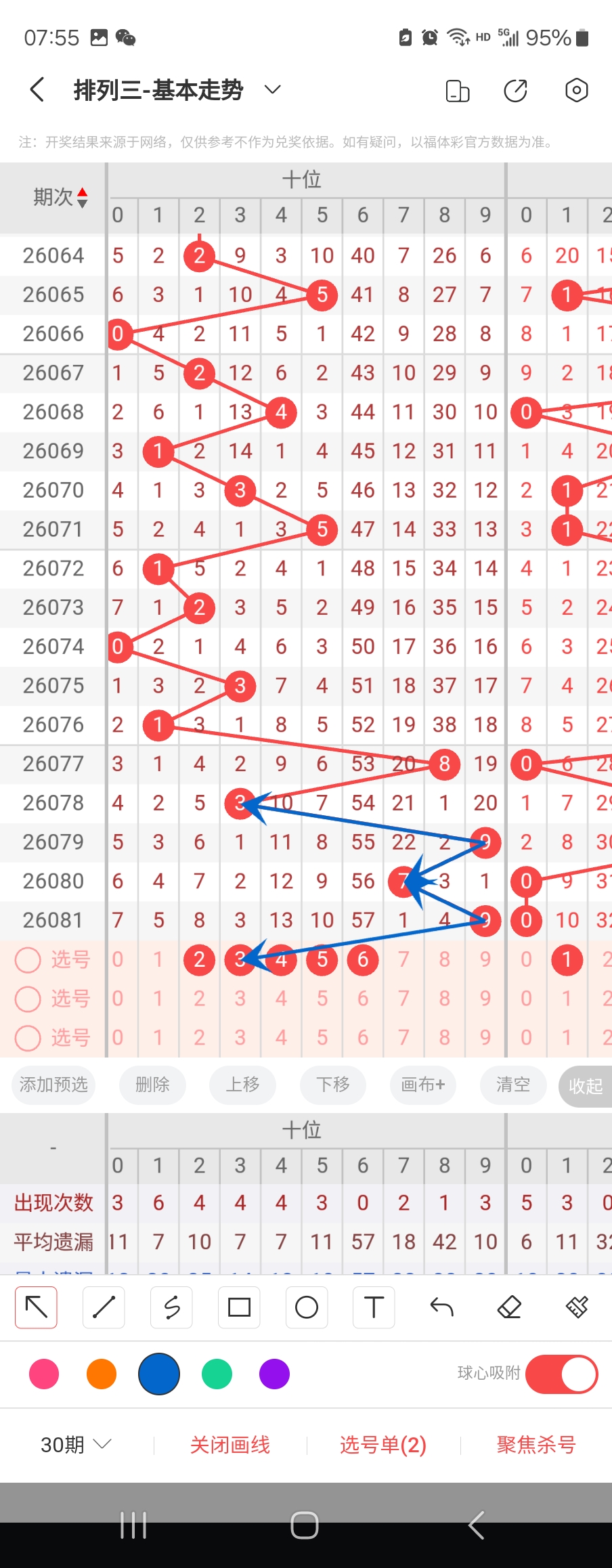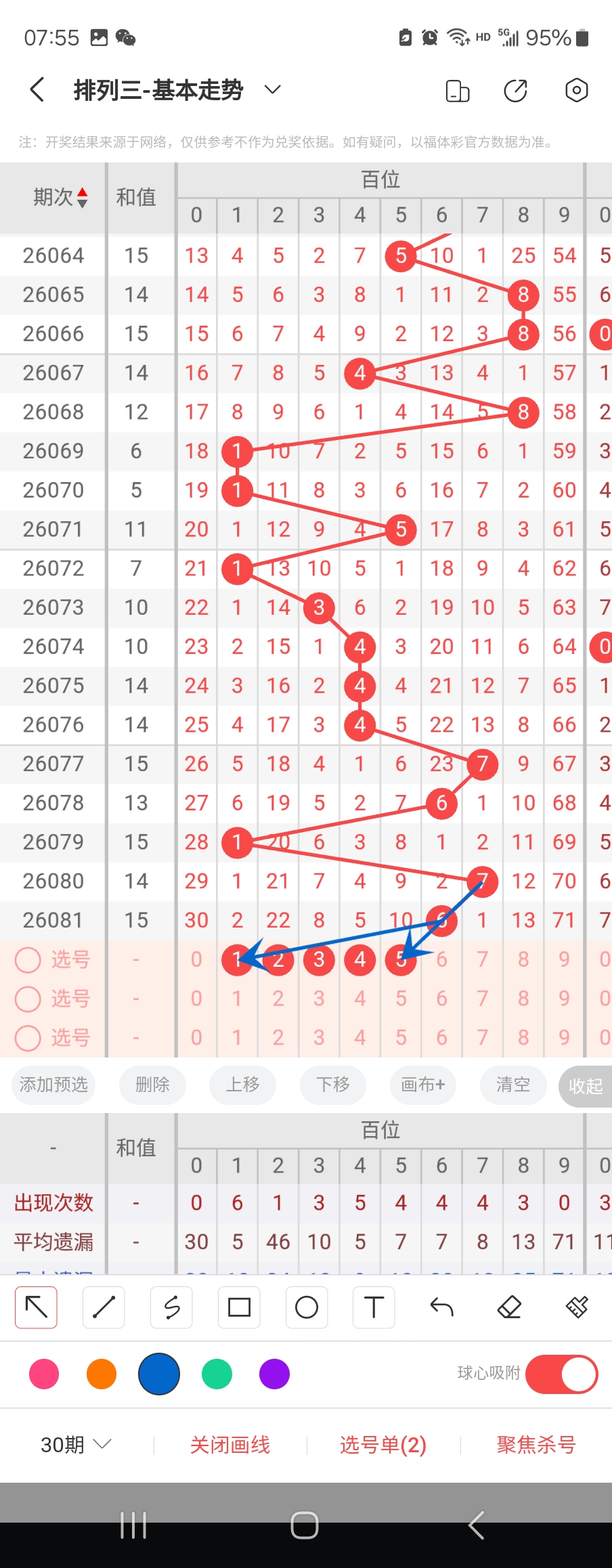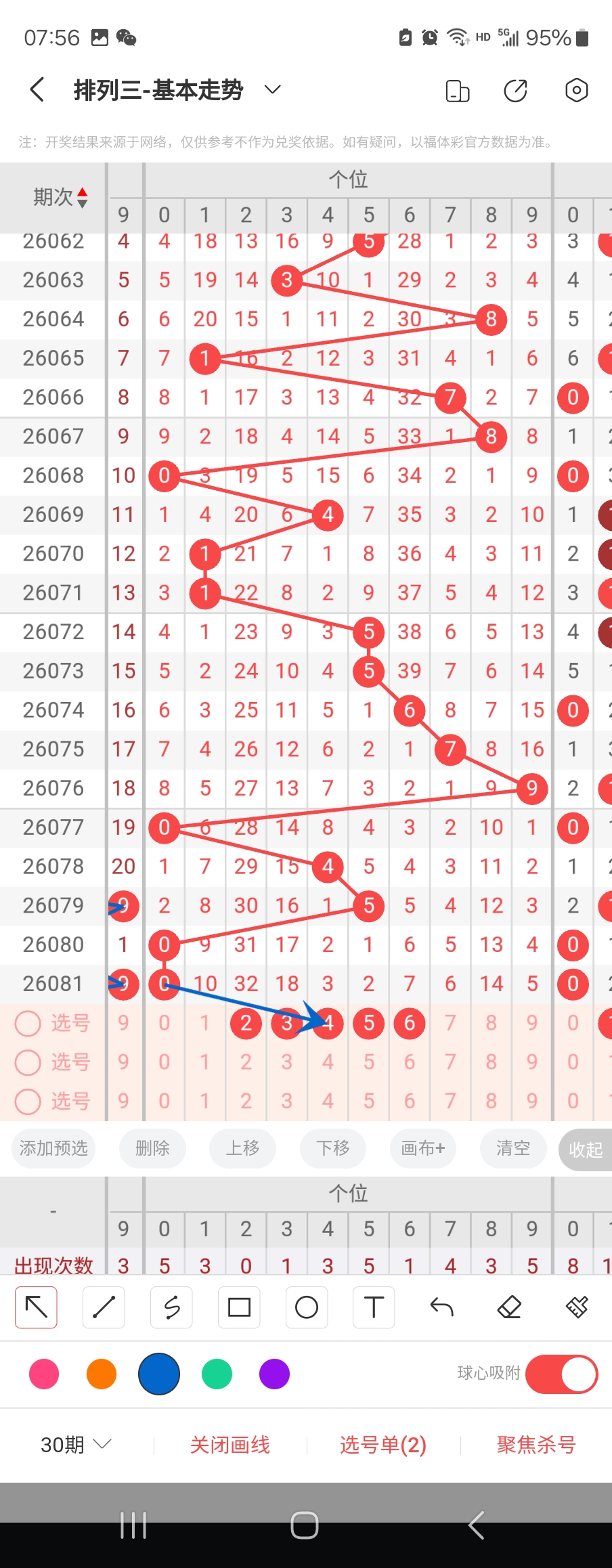 个位走势标注如下图;