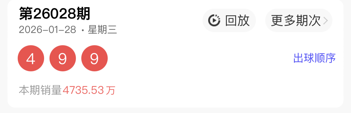 26028期命中全部号码 4,9,9