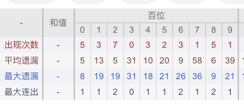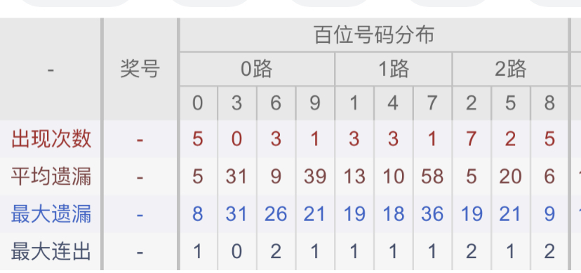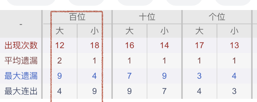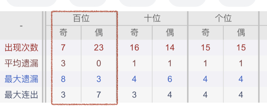 从近30期数据我们可以看出百位1是热码,这个冷热码数据我们结合之后的分析再利用它