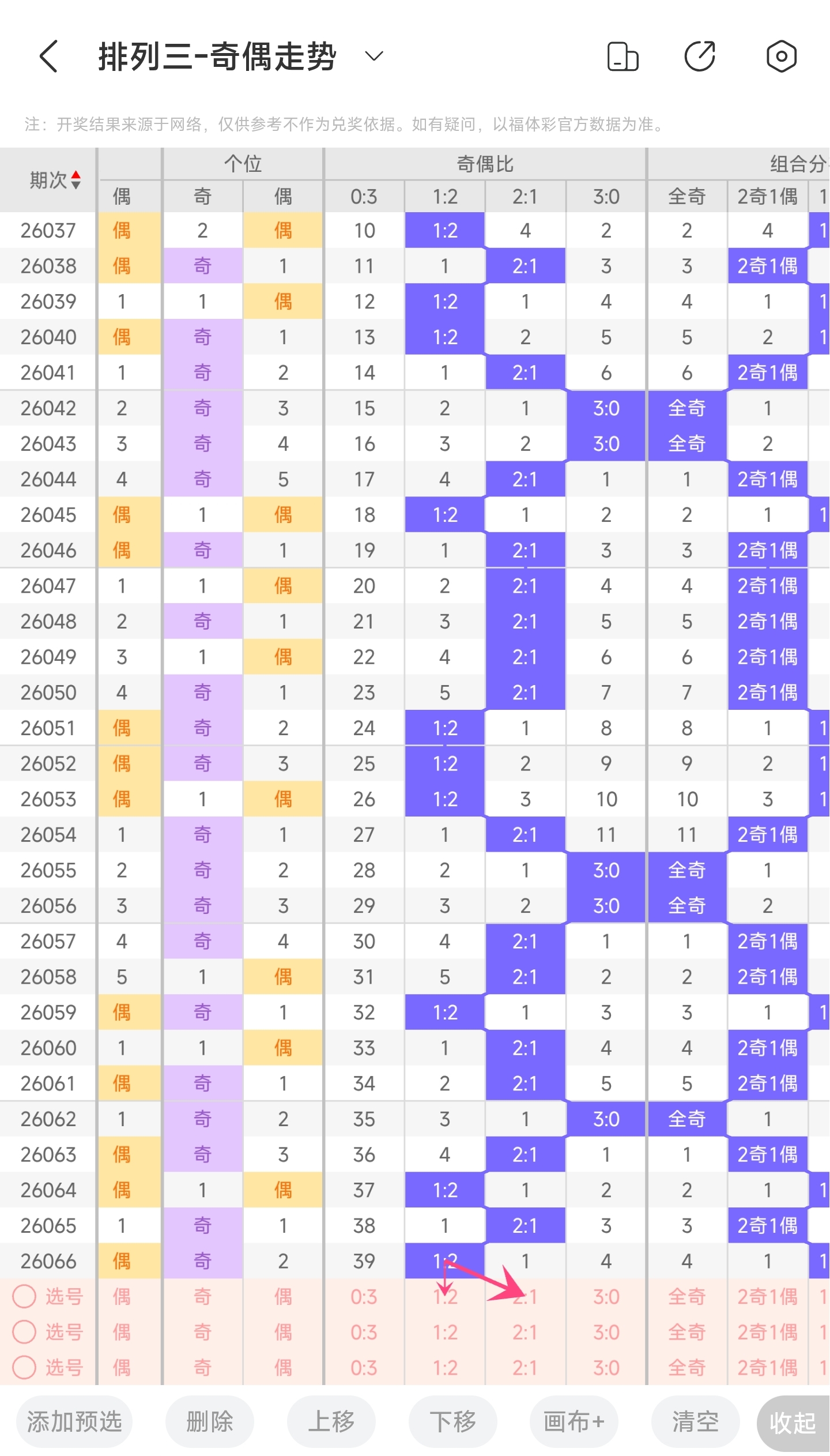 三、通过奇偶走势分析: