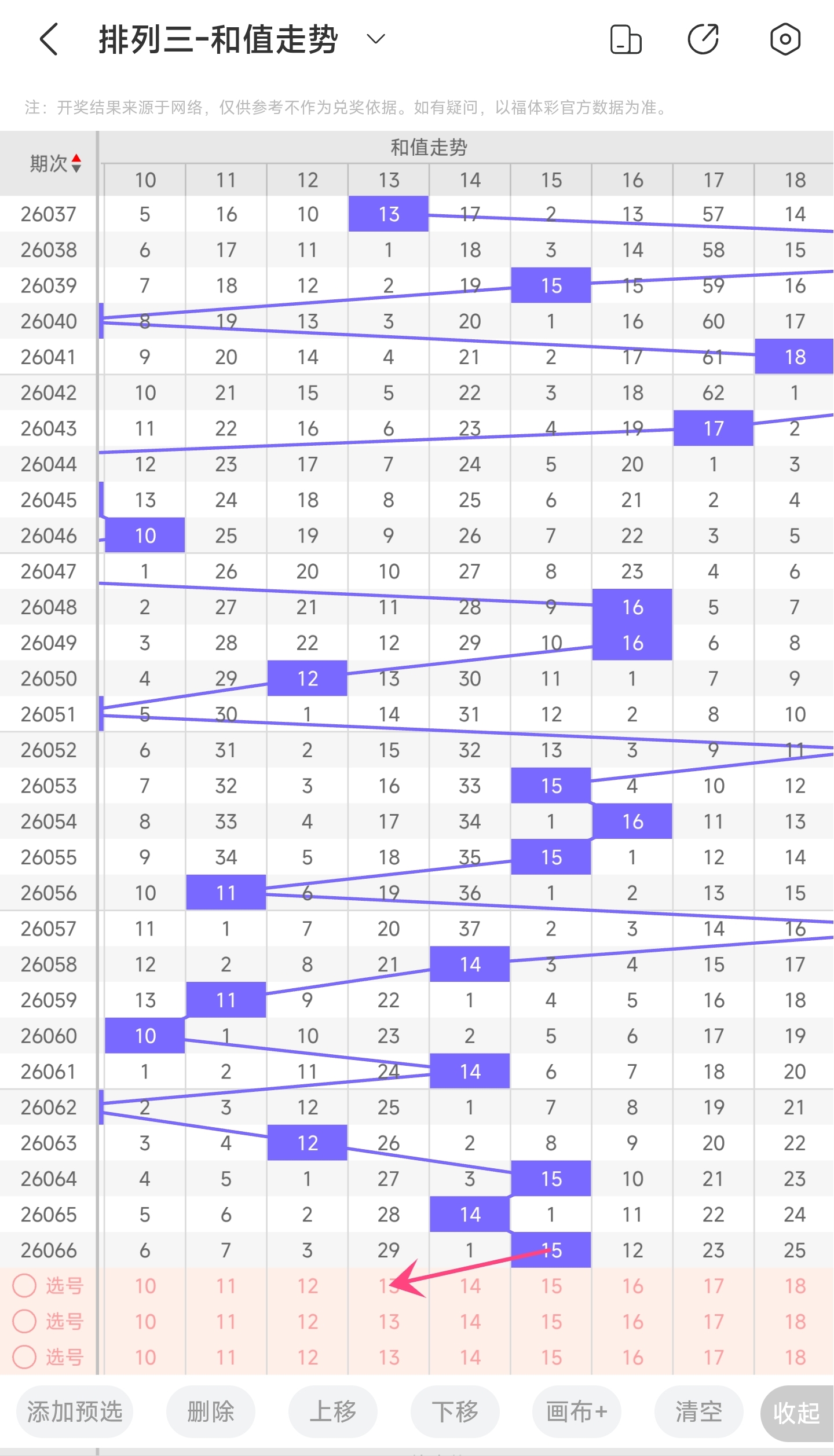 二、通过和值走势分析: