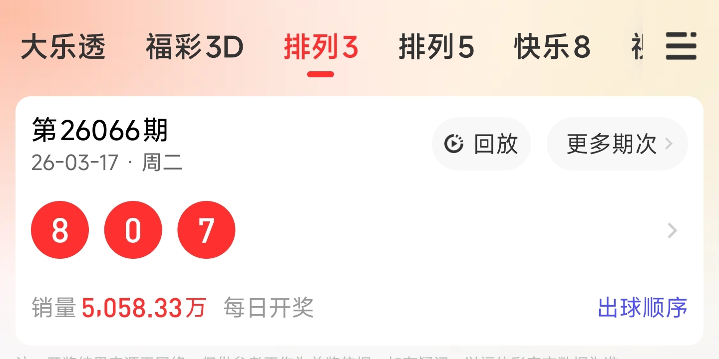 26065期命中全部号码 8,5,1
