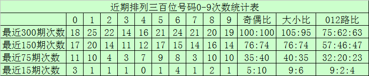 百位分析:最近300期奖号由冷到热表现为:322,025,527,428,929,731,6832,234,140次,奖号奇偶比为149:151,大小比为151149012路比为108:99:93